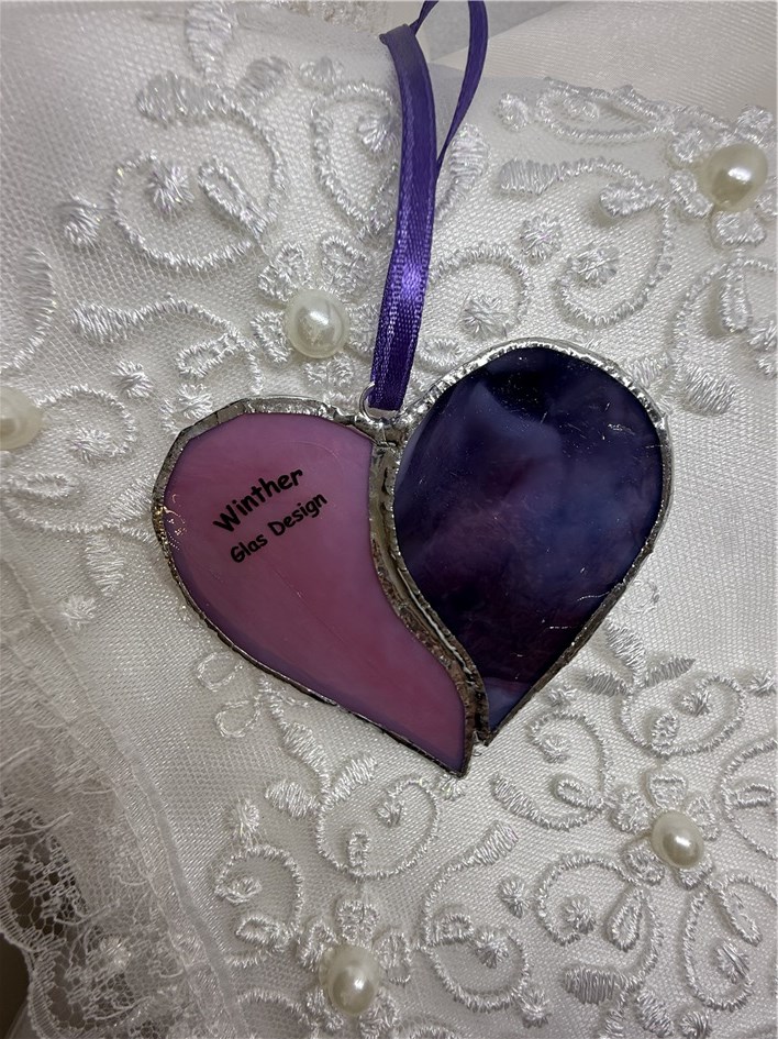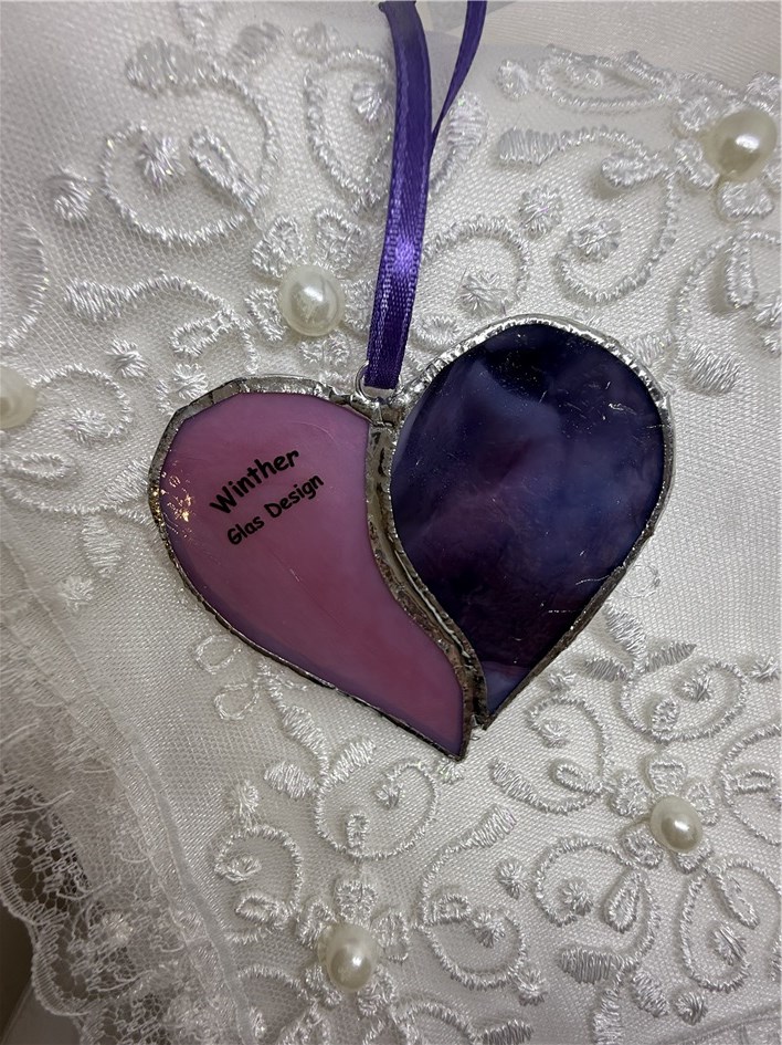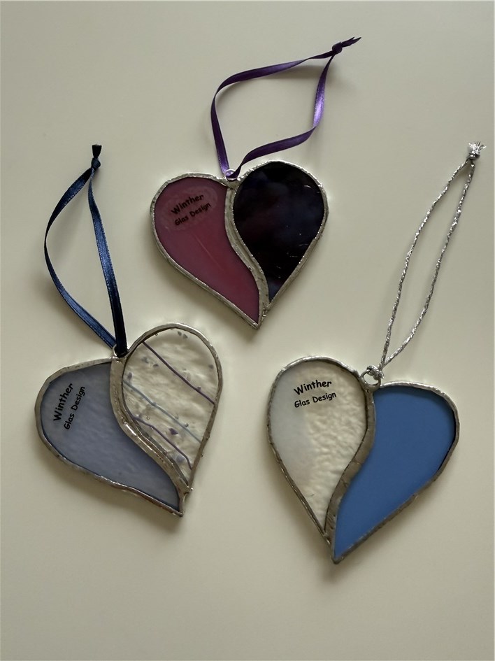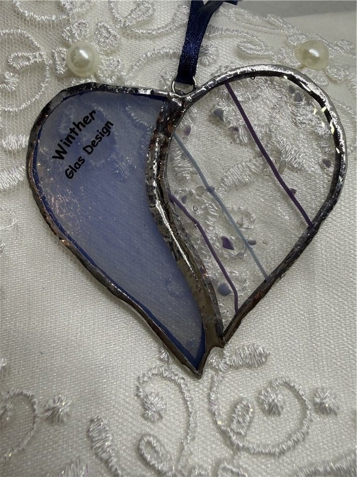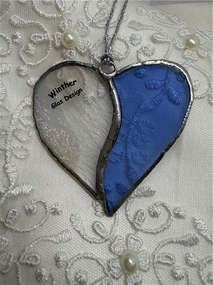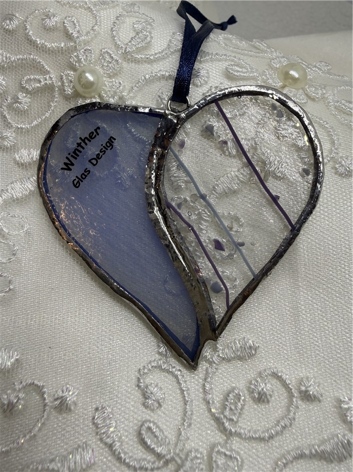 Hjerte i bulseye glas til ophæng (Str. 7x7 cm)
