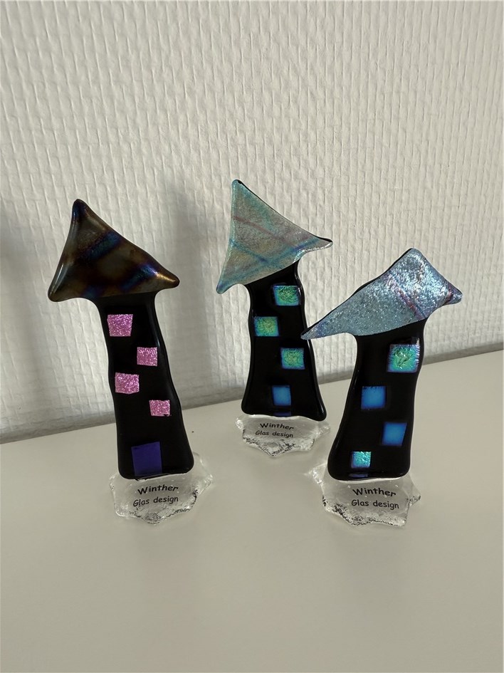 Små huse i forskellige farver og størrelser og som kan bruges sammen med fyrfadslys eller med julelyskæder bag. Andre huse er bare til pynt.